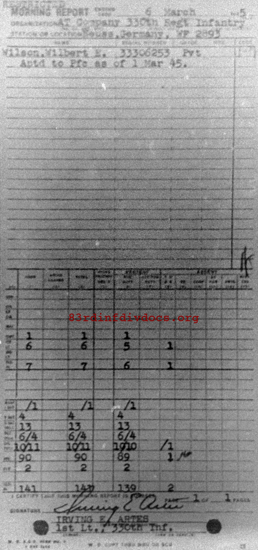 Morning report ATCO/330 for March 6, 1945