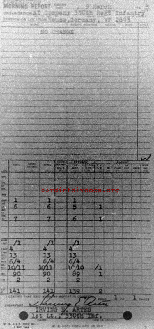 Morning report ATCO/330 for March 9, 1945