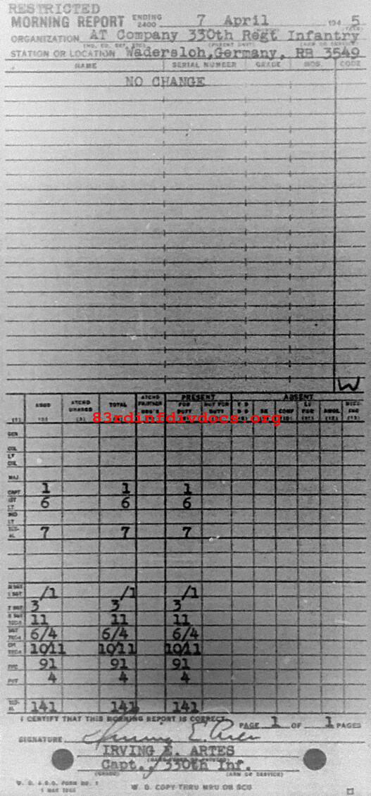 Morning report ATCO/330 for April 7, 1945