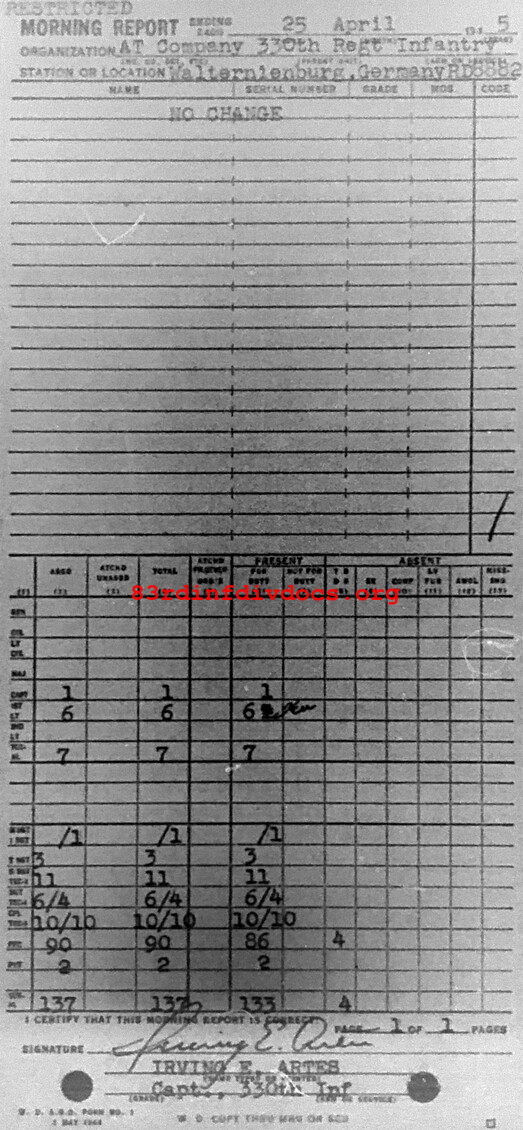 Morning report ATCO/330 for April 25, 1945