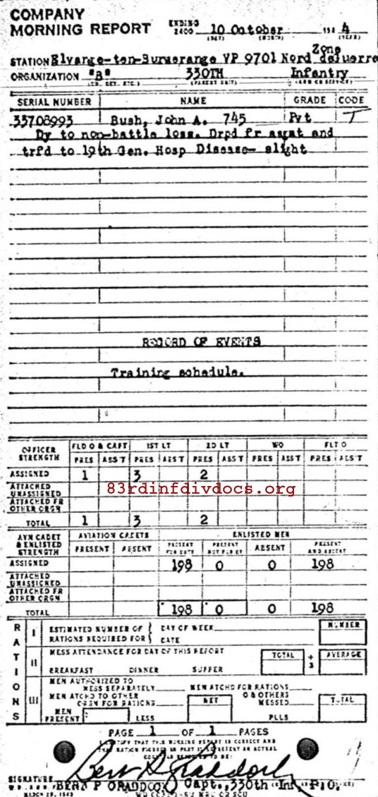 Morning report B/330 for October 10, 1944