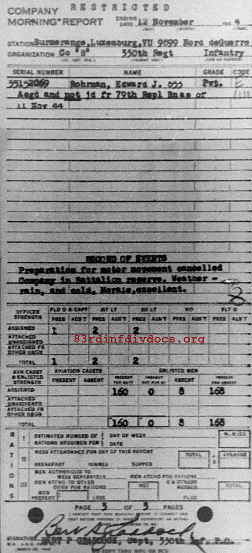 Preparation for motor move cancelled. Company in Battalion reserve. Weather - rain and cold. Morale excellent.