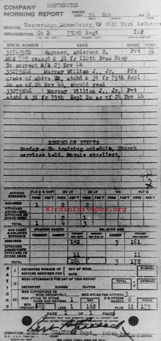 Morning report B/330 for November 26, 1944