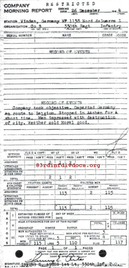 Morning report B/330 for December 26, 1944