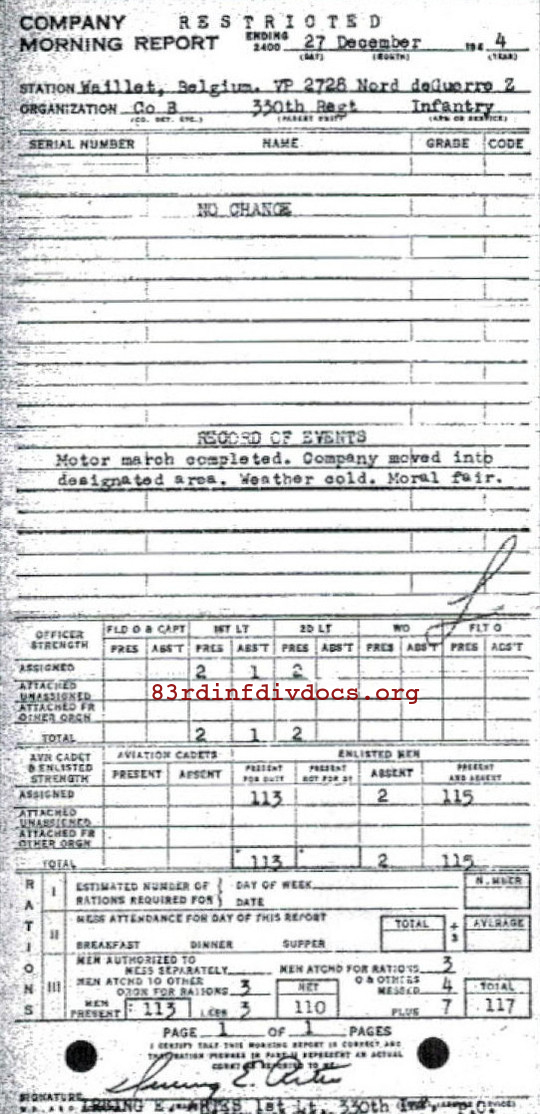 Motor march completed. Company moved into designated area. Weather cold. Moral fair.