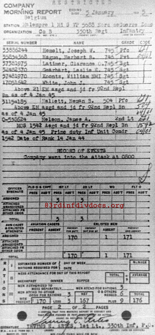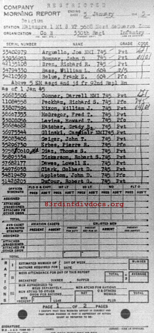 Morning report B/330 for January 5, 1945