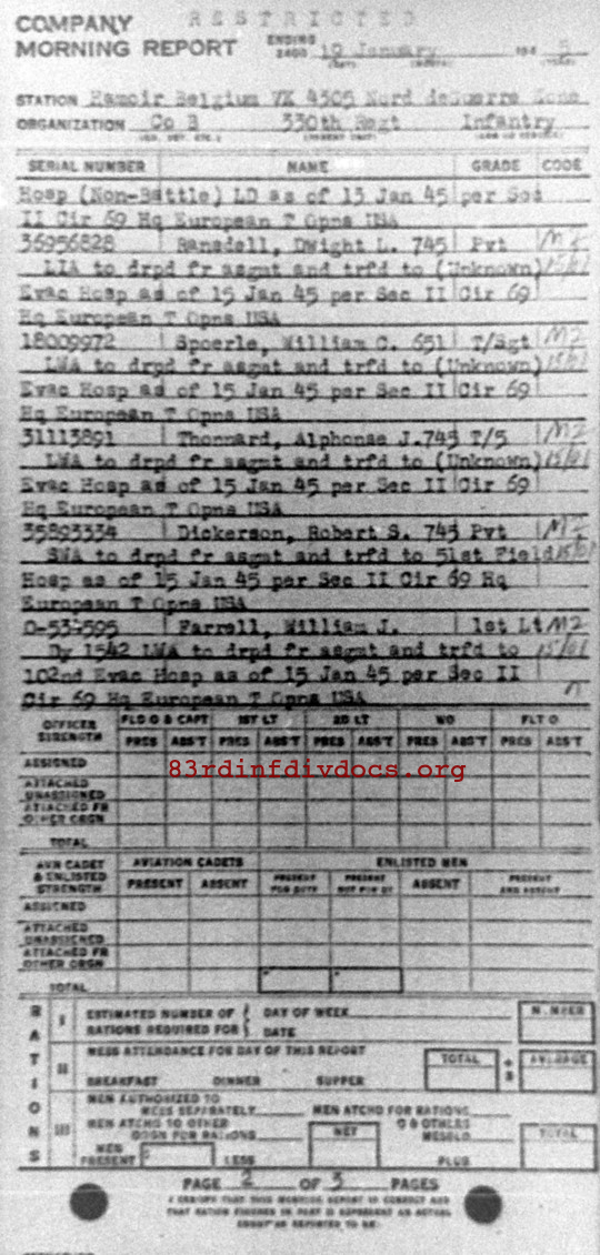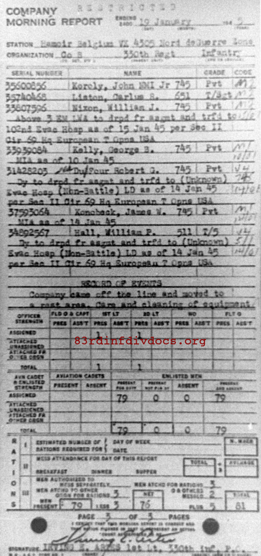 Company came off the line and moved to a rest area. Care and cleaning of equipment.