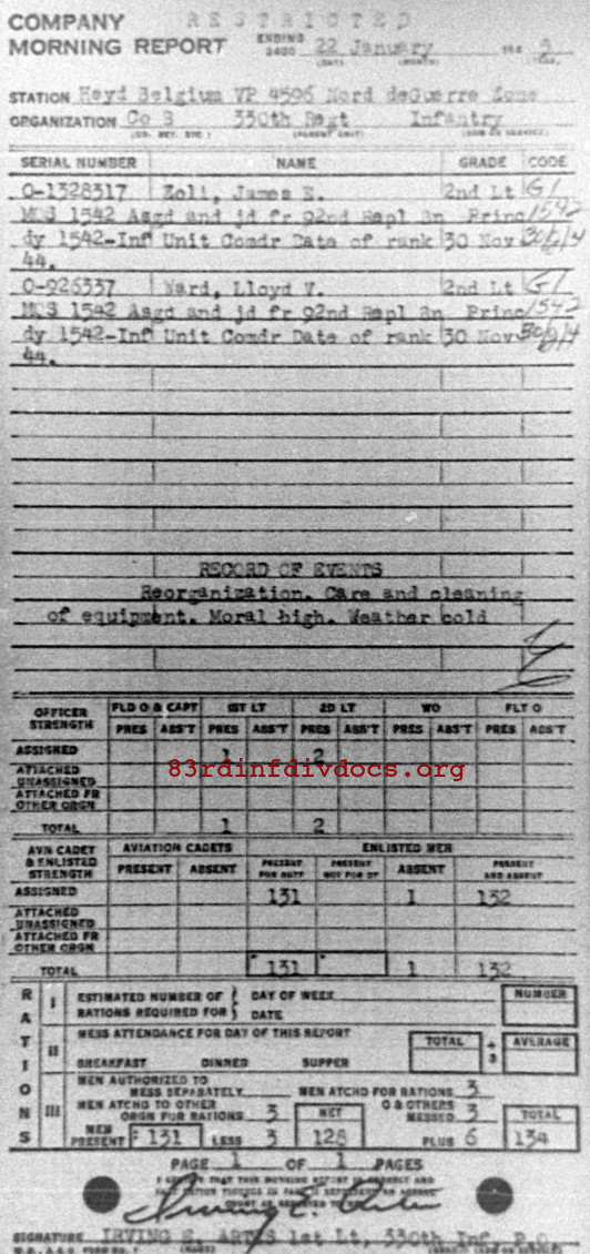 Morning report B/330 for January 22, 1945