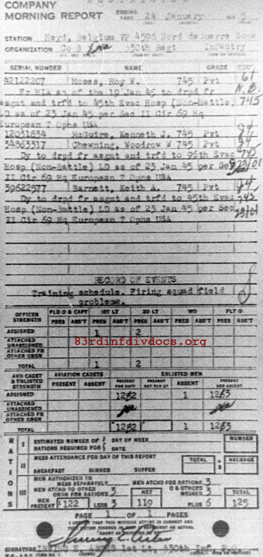 Morning report B/330 for January 24, 1945