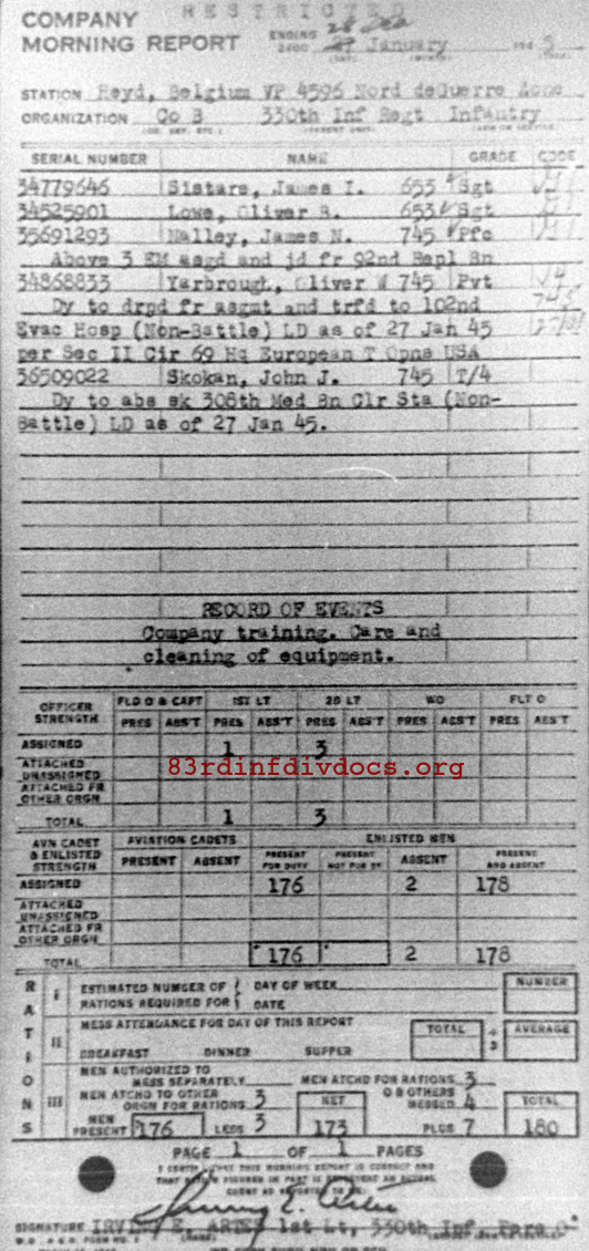 Morning report B/330 for January 28, 1945