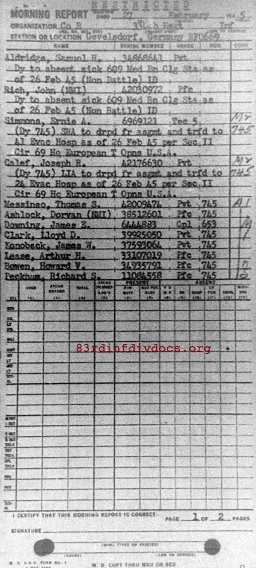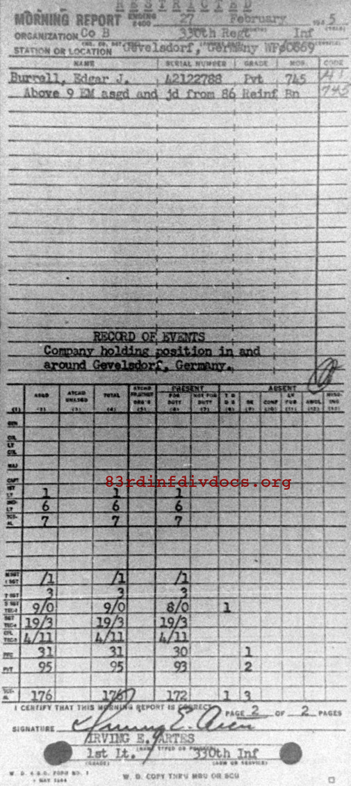 Morning report B/330 for February 27, 1945