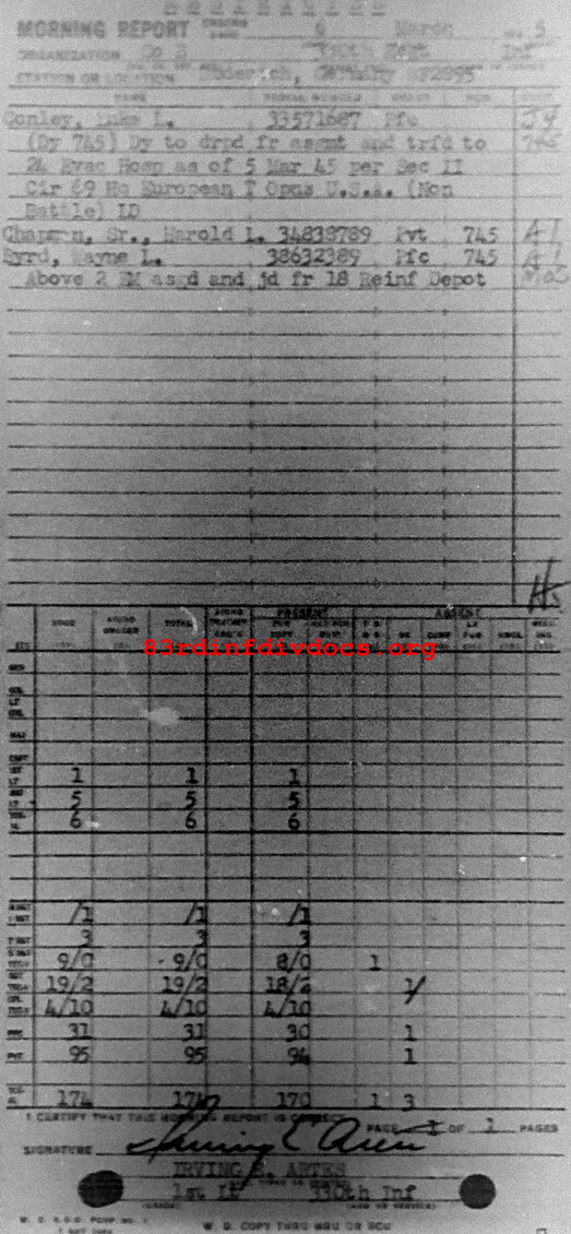 Morning report B/330 for March 6, 1945