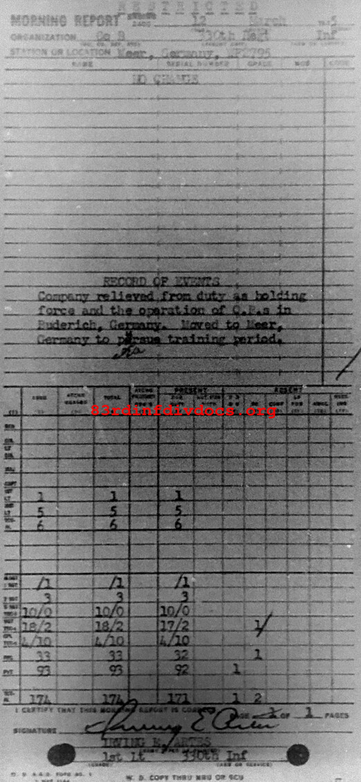 Morning report B/330 for March 12, 1945