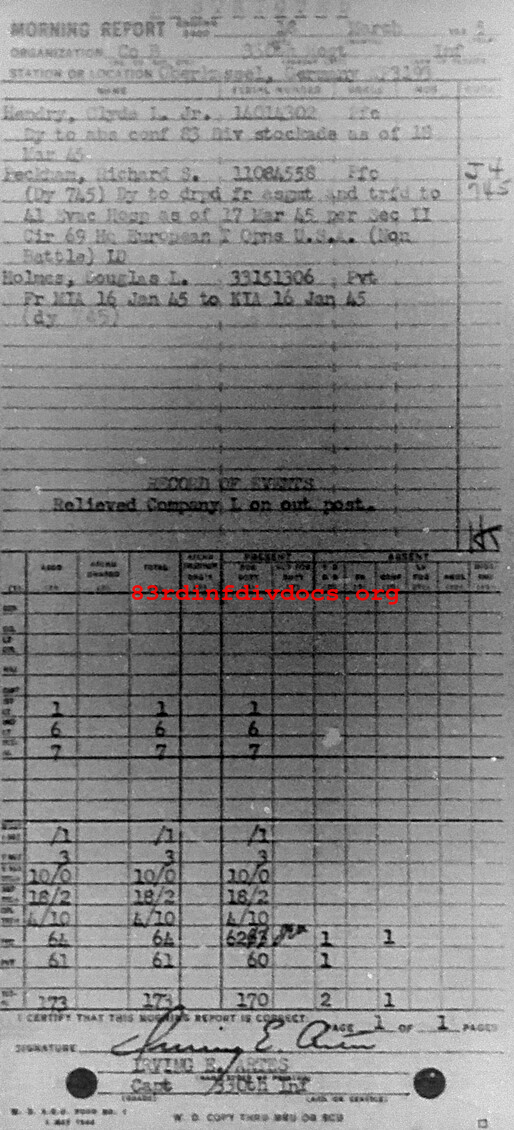 Morning report B/330 for March 18, 1945