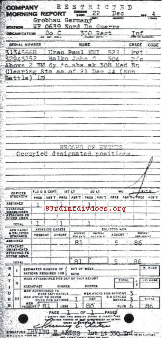 Morning report C/330 for December 22, 1944
