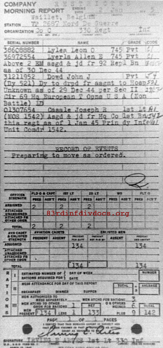 Morning report C/330 for January 2, 1945