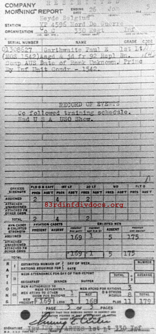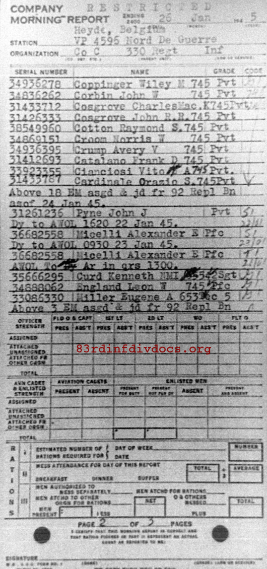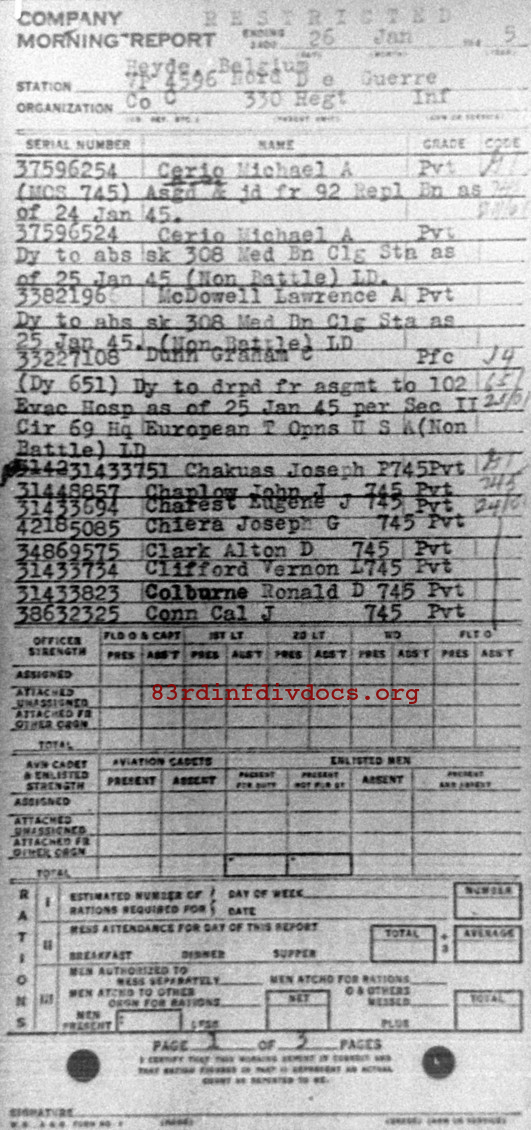 Morning report C/330 for January 26, 1945