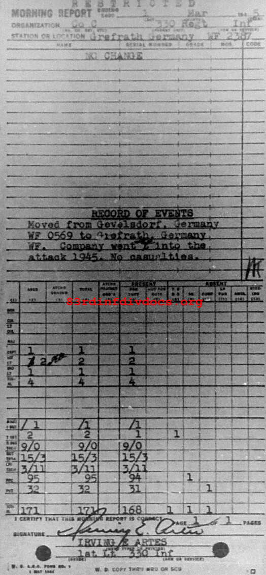 Morning report C/330 for March 1, 1945