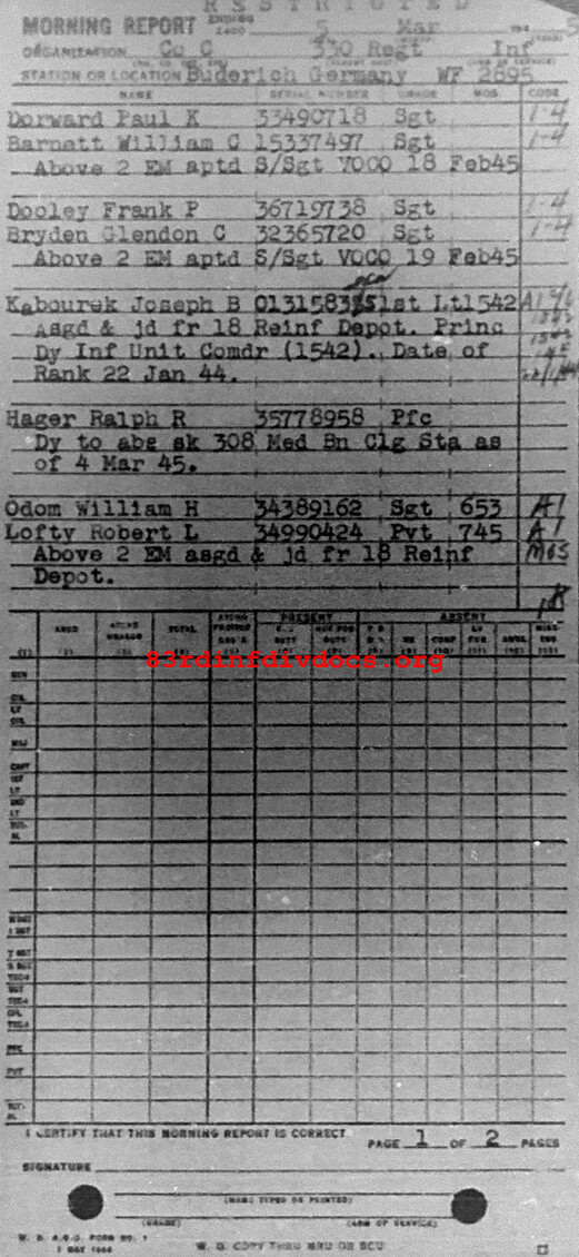 Morning report C/330 for March 5, 1945