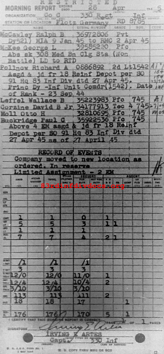 Morning report C/330 for April 28, 1945