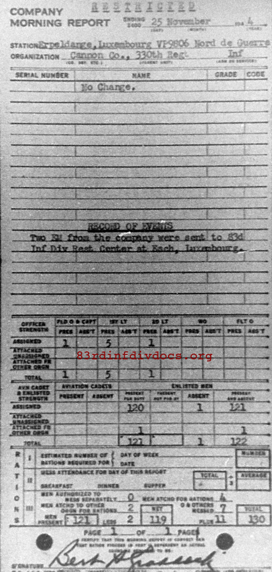 Morning report CANCO/330 for November 25, 1944