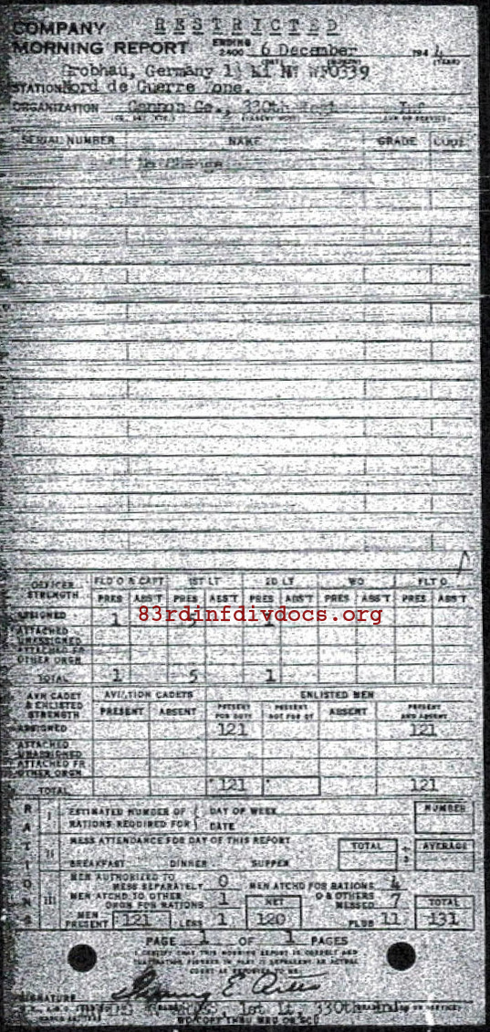Morning report CANCO/330 for December 6, 1944