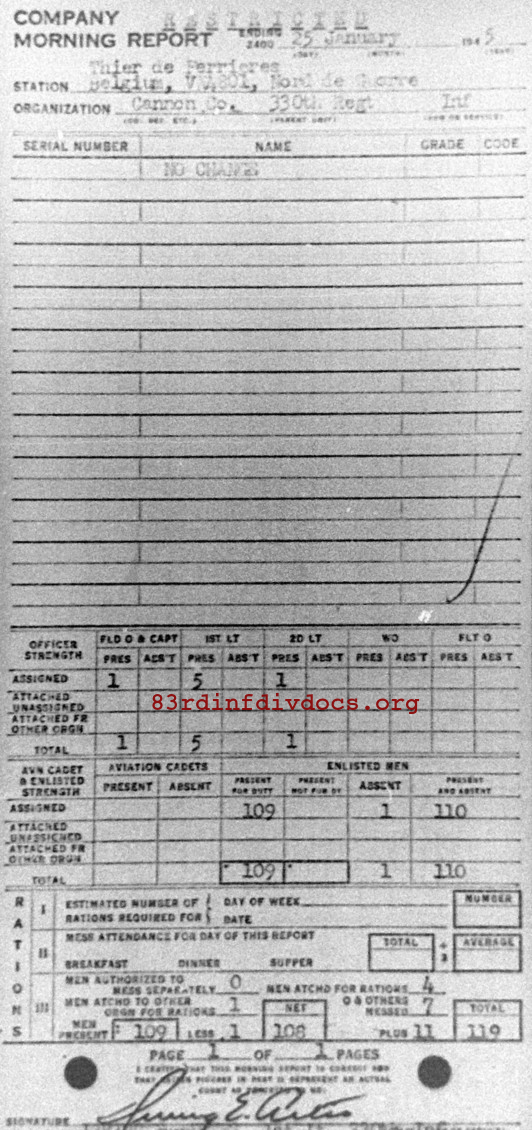 Morning report CANCO/330 for January 25, 1945