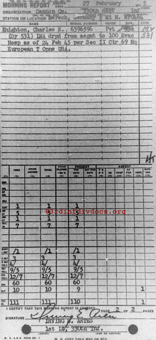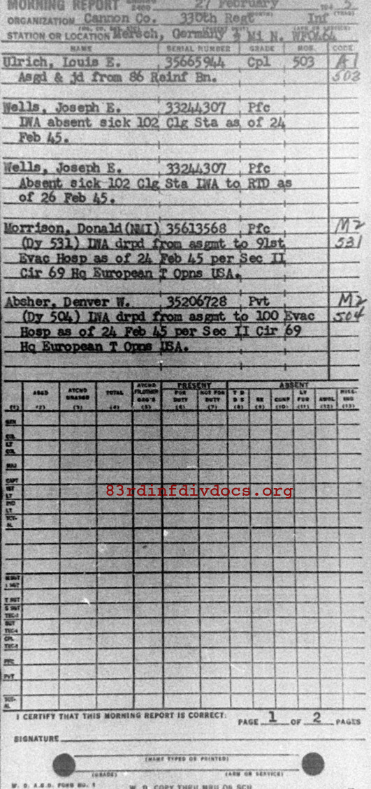 Morning report CANCO/330 for February 27, 1945