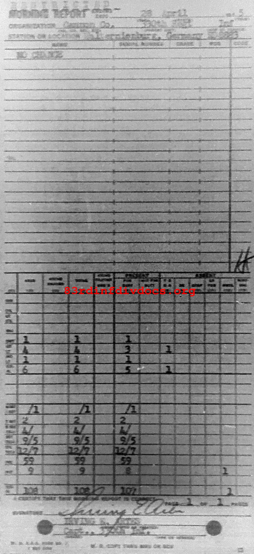 Morning report CANCO/330 for April 28, 1945