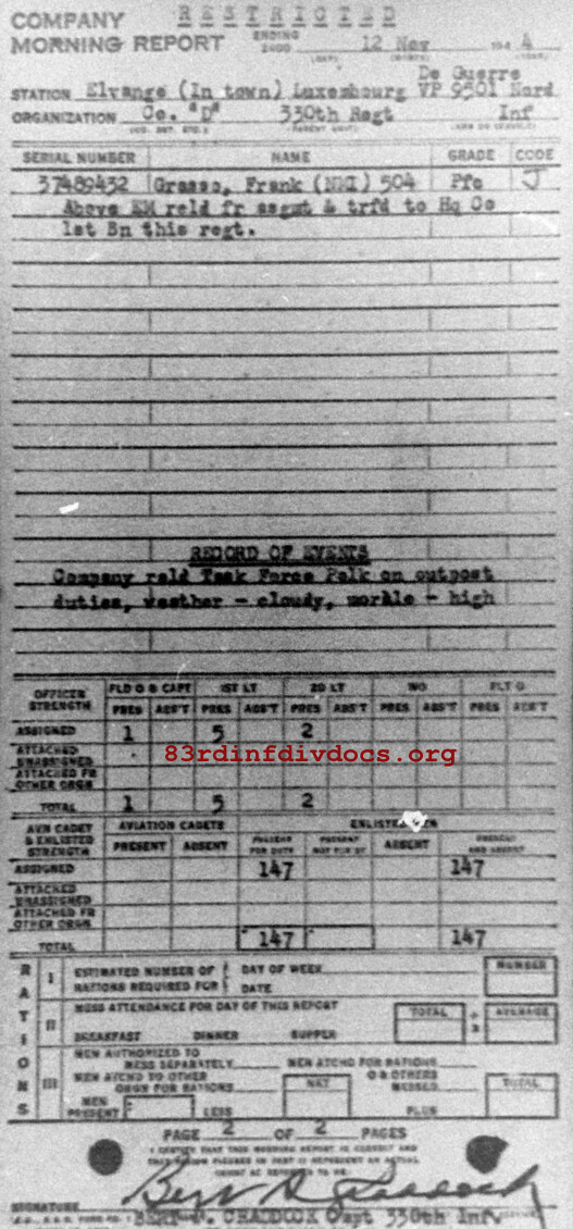 Company reld Task Force Polk on outpost duties, weather - cloudy, morale - high