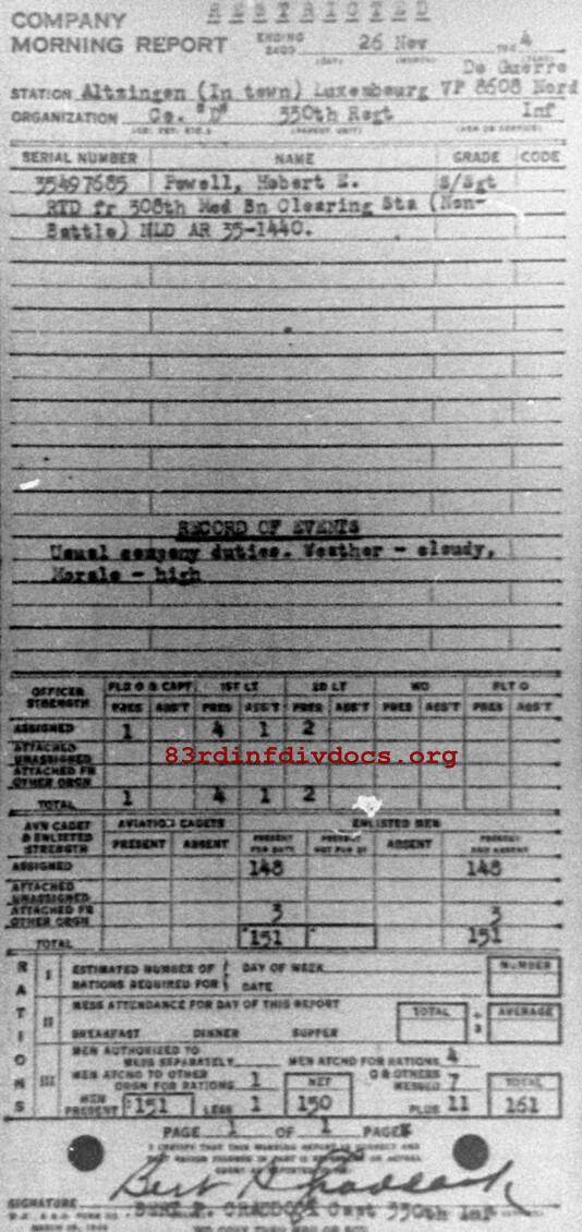 Morning report D/330 for November 26, 1944