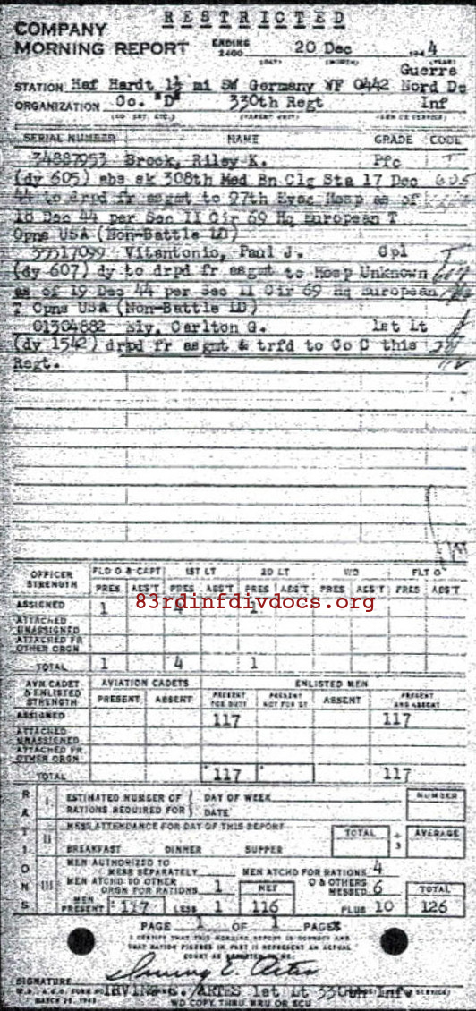 Morning report D/330 for December 20, 1944