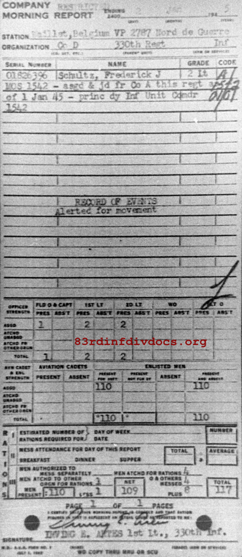 Morning report D/330 for January 2, 1945