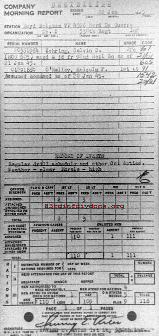 Morning report D/330 for January 22, 1945