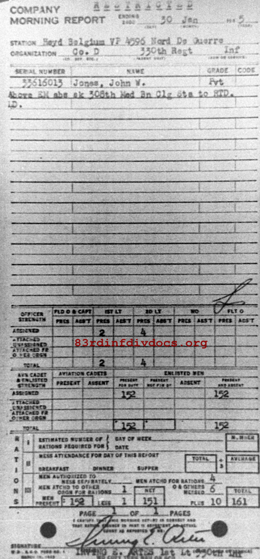 Morning report D/330 for January 30, 1945
