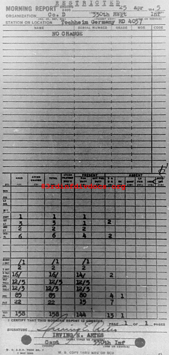 Morning report D/330 for April 25, 1945