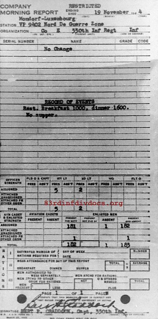Morning report E/330 for November 19, 1944