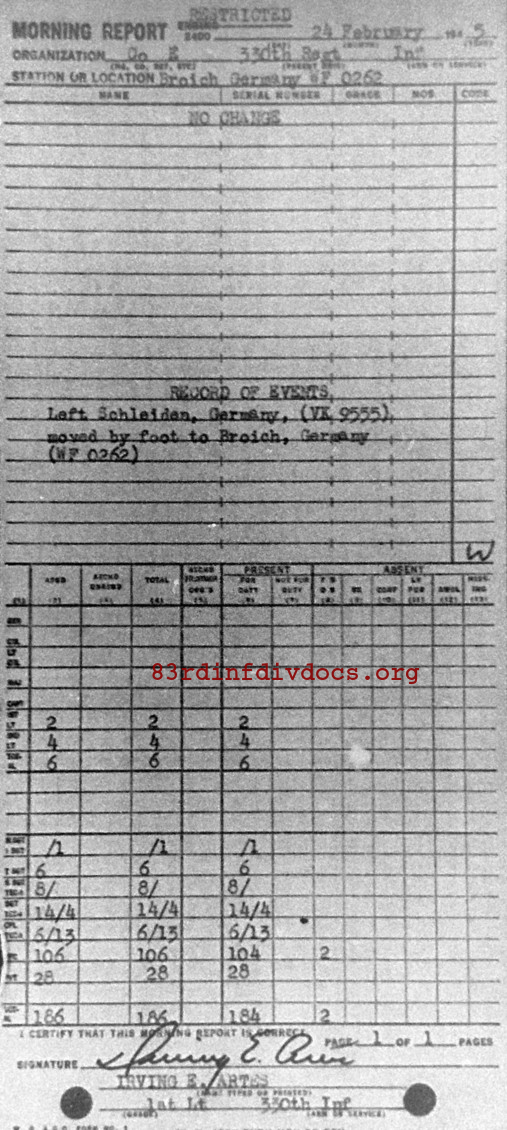Morning report E/330 for February 24, 1945