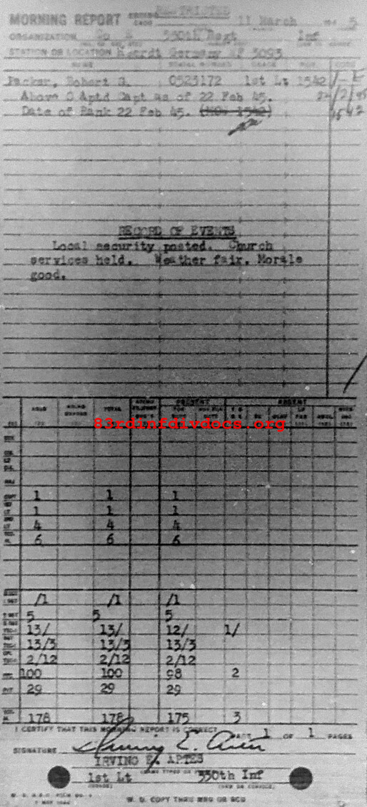 Morning report E/330 for March 11, 1945