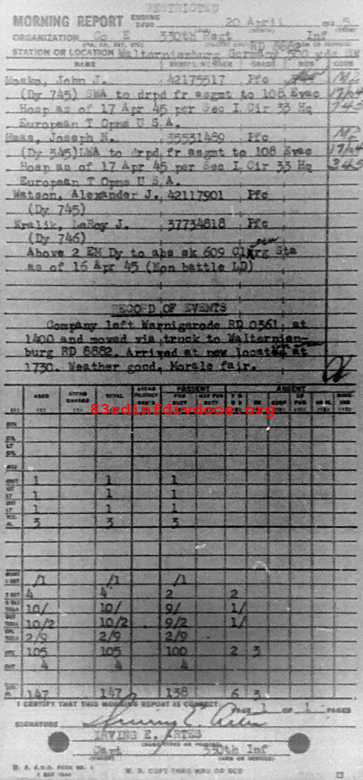Morning report E/330 for April 20, 1945