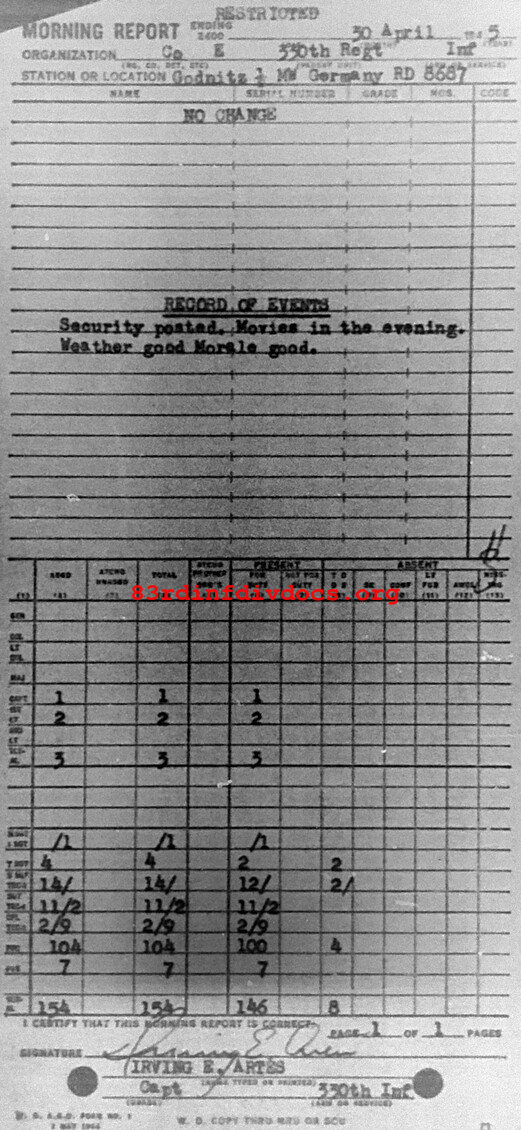 Morning report E/330 for April 30, 1945