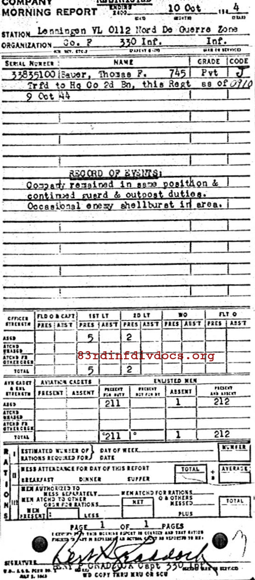 Company remained in same position & continued guard & outpost duties. Occasional enemy shellburst in area.