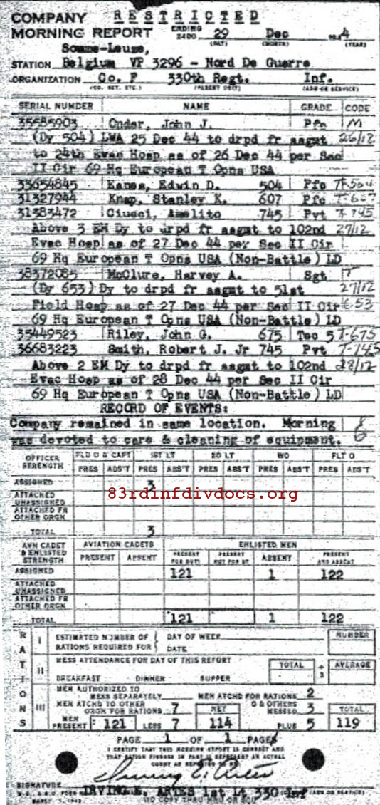 Morning report F/330 for December 29, 1944