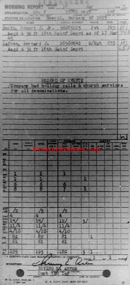 Morning report F/330 for March 18, 1945