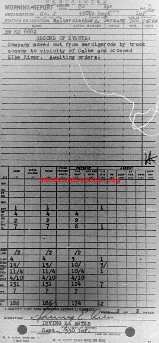 Morning report F/330 for April 20, 1945