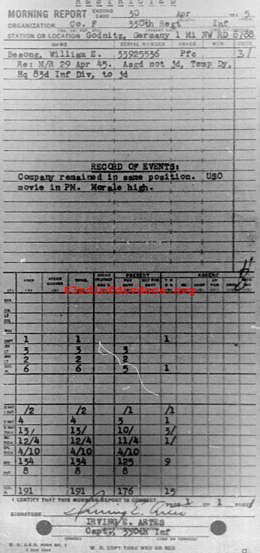 Morning report F/330 for April 30, 1945