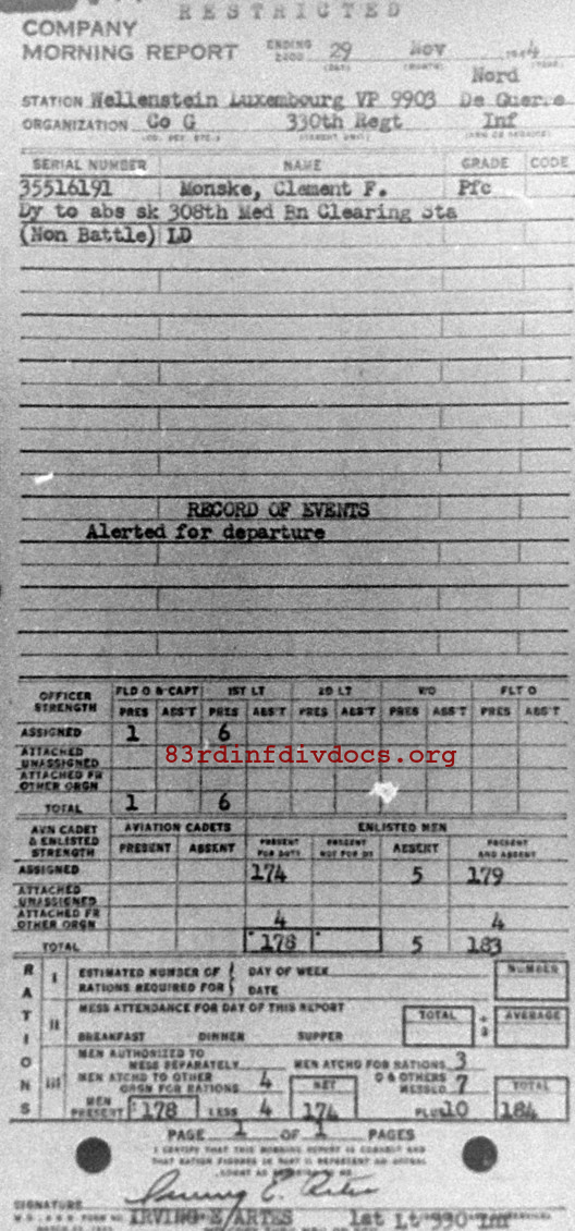 Morning report G/330 for November 29, 1944