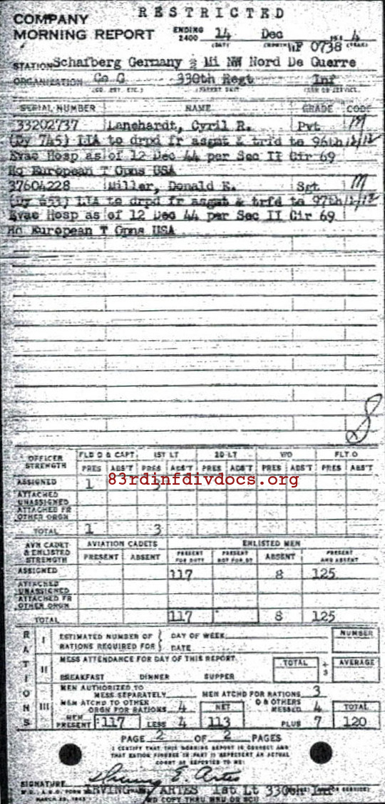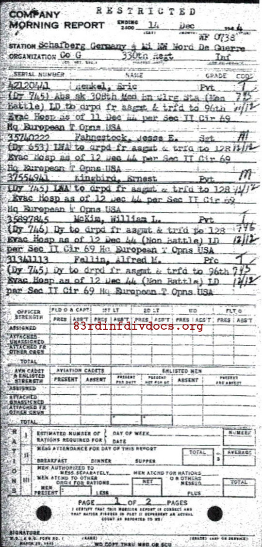 Morning report G/330 for December 14, 1944