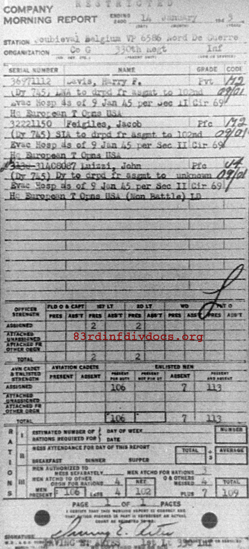Morning report G/330 for January 14, 1945