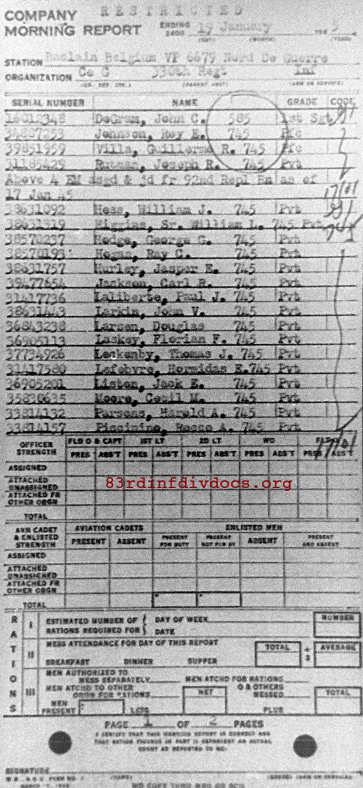 Morning report G/330 for January 19, 1945